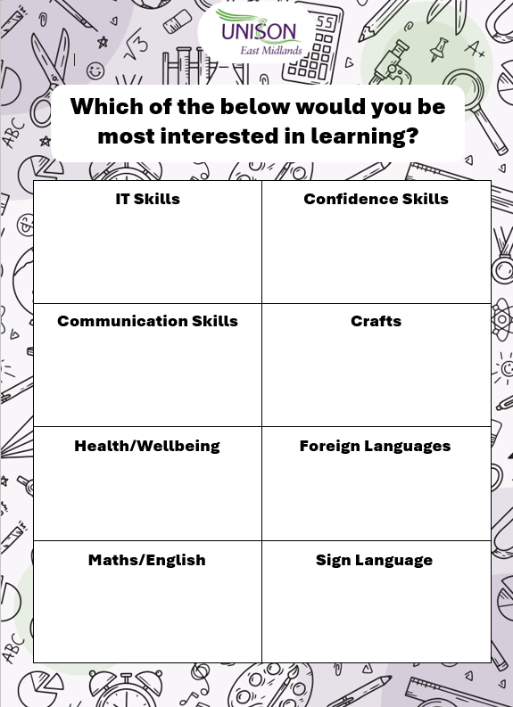 During this week all East Midlands branches are asked to focus on learning and use it to help promote the union and recruit new members. This page is a home for resources that can be used. For help please contact g.mccann@unison.co.uk or e.smith-gibbs@unison.co.uk